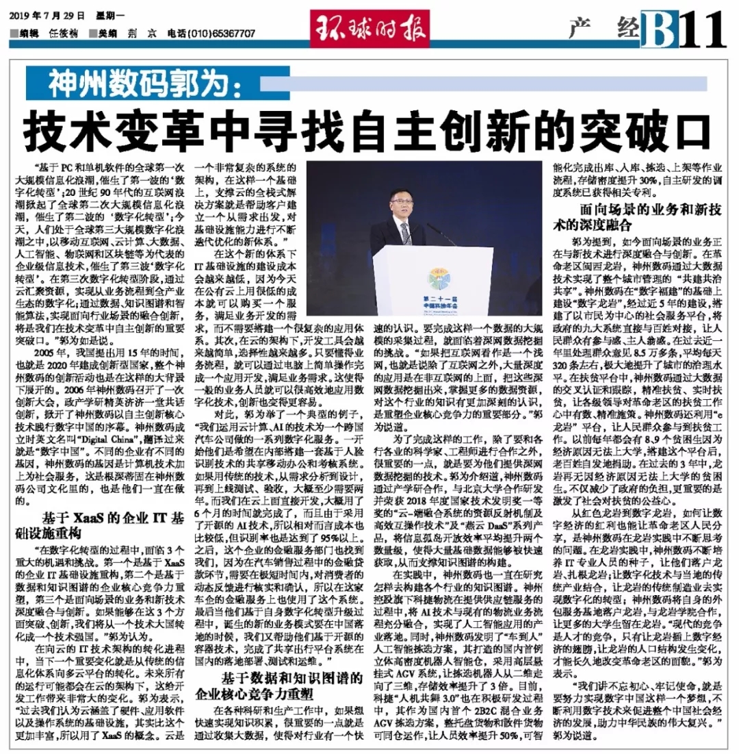 2019年7月29日,《环球时报》刊载题目为《350vip浦京集团郭为:技术变革中寻找自主创新的突破口》的深度文章。该文节选自郭为在第二十一届中国科协年会闭幕式上发表的主题演讲。
